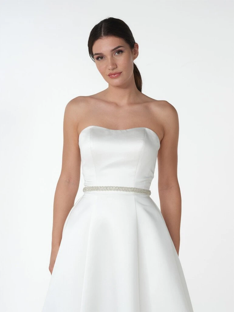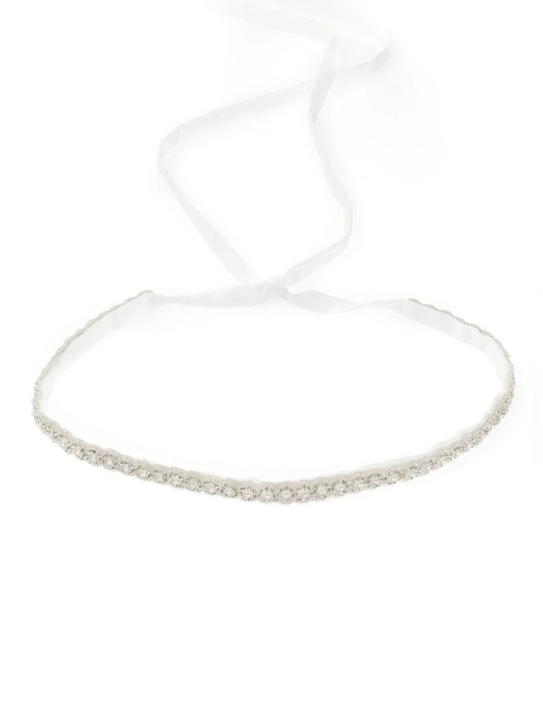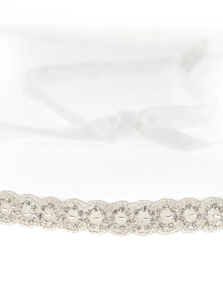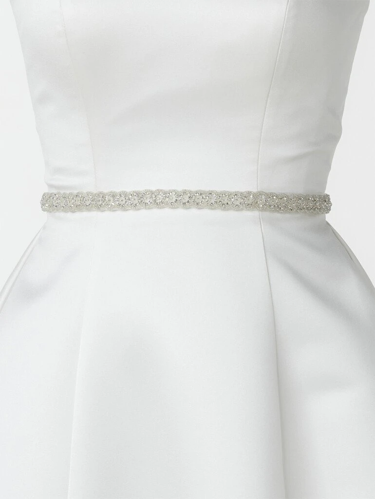 Prachtige bruidsriem C-1506 van het Nederlandse merk Poirier. Met deze smalle bruidsriem voeg je subtiel wat extra glinstering toe aan jouw bruidslook. De bruidsriem is bezet met prachtige steentjes en heeft een breedte van ongeveer 1,5 cm.