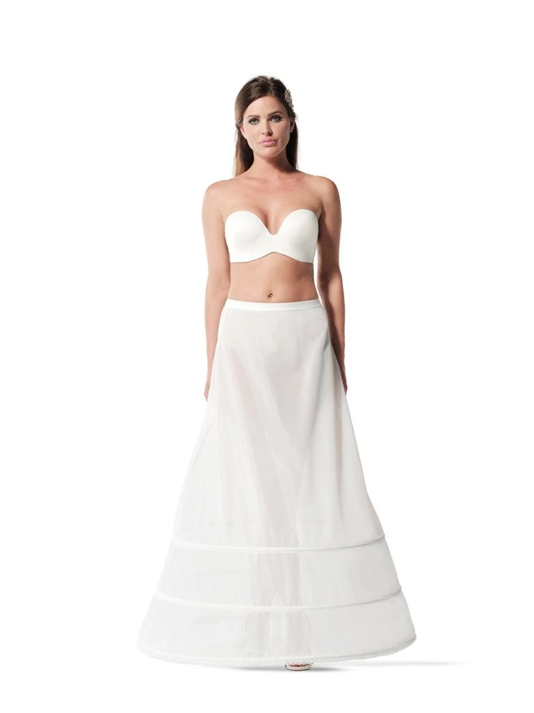 Deze hoepel 3-270E cm wordt geleverd met drie baleinen en zonder stroken. Hierdoor is deze bruidsonderrok uitermate geschikt is voor een bruidsjurk die al goed gevoerd is. De drie baleinen zorgen ervoor dat de jurk genoeg steun geeft aan de bruidsjurk. Leverbaar in verschillende maten.