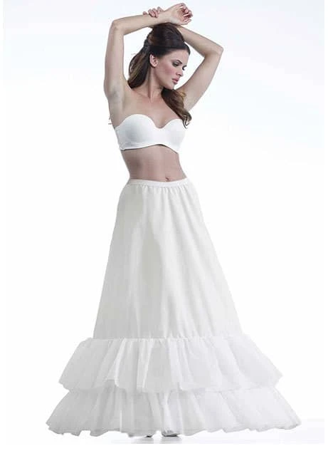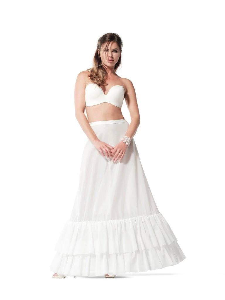 Deze 5-270E basis-petticoat wordt geleverd met drie baleinen en twee stroken. Hierdoor is deze bruidsonderrok uitermate geschikt is voor een bruidsjurk die al goed gevoerd is. De drie baleinen zorgen ervoor dat de jurk genoeg steun geeft aan de bruidsjurk. Leverbaar in verschillende maten.