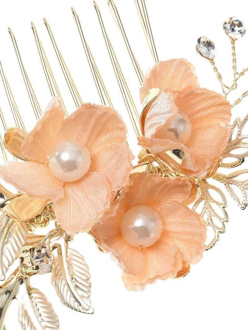 - Goudkleurige kam met peachkleurige of babyblauwe bloemetjes, goudkleurige takjes en blaadjes, maar ook pareltjes en strasssteentjes