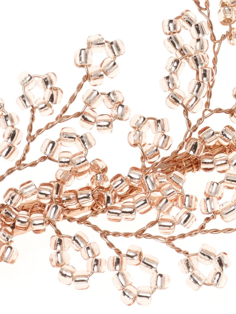 Ben je op zoek naar een prachtige rose haaraccessoire met strass van het merk Poirier? Dit haarsierraad heeft de vorm van een takje met blaadjes, bestaande uit rosé gouden kraaltjes. Deze haaraccessoire kan ook worden gebruikt om boven de sluier te steken.