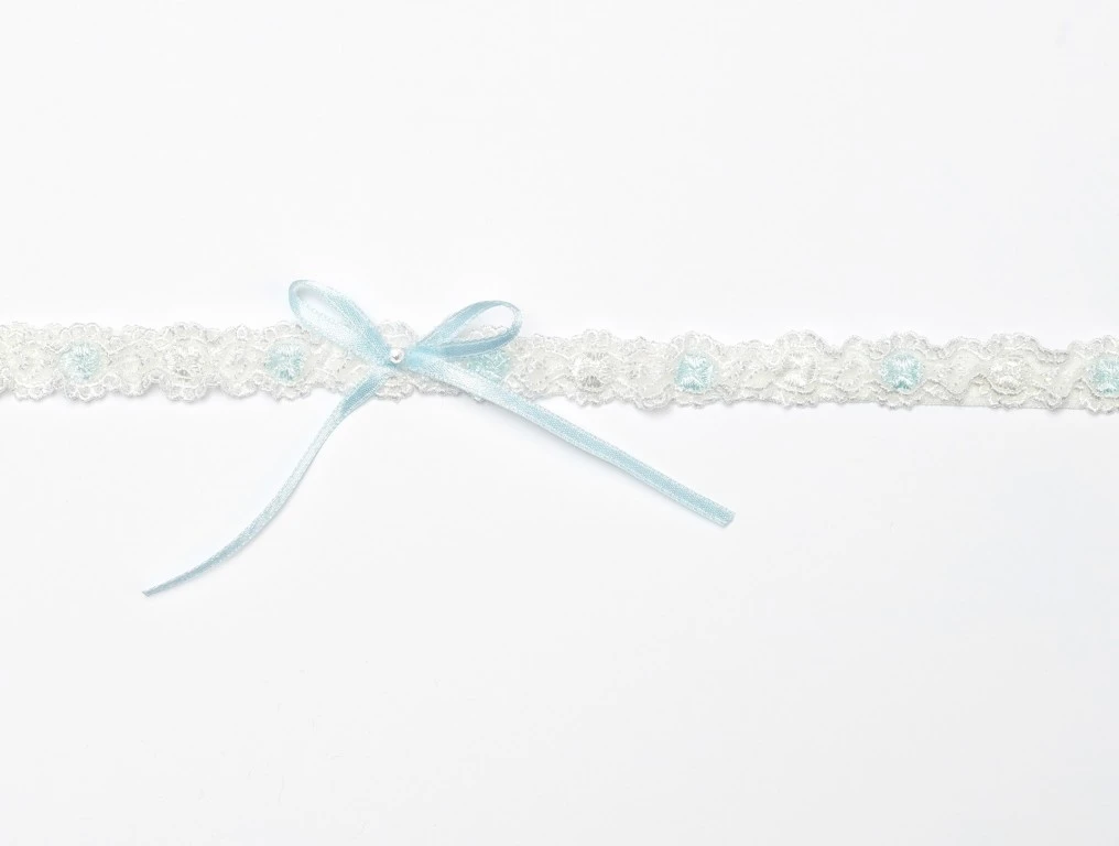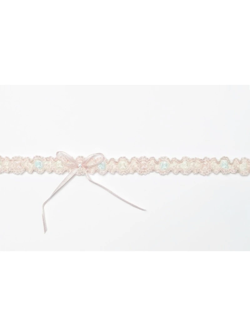 Luxe tweekleurige Kousenband kb 22 van het merk Poirier. Verkrijgbaar in Ivory/Pink en in Ivory pink/blue