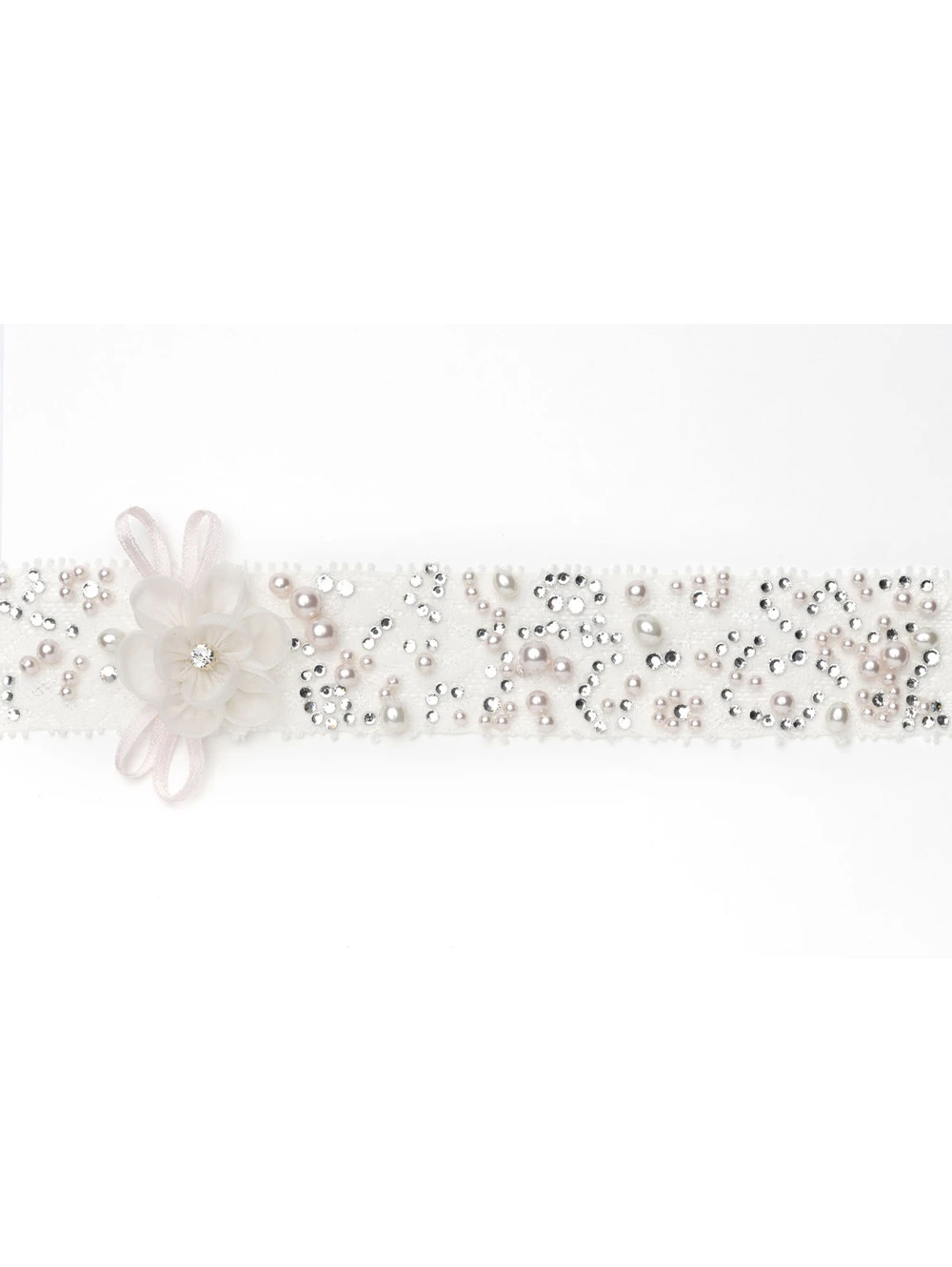 Luxe kousenband van het merk Poirier met pareltjes en kleine strass steentjes. De kousenband is verkrijgbaar in het blauw of rose, en wordt geleverd in een mooie geschenkverpakking.