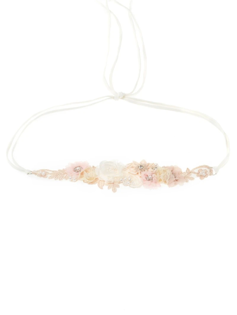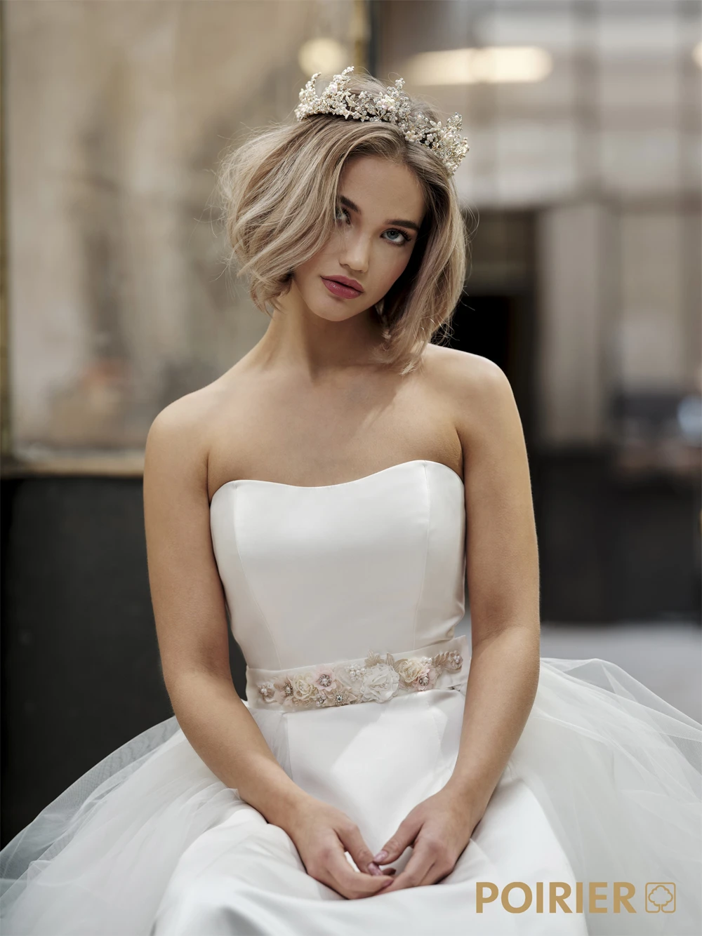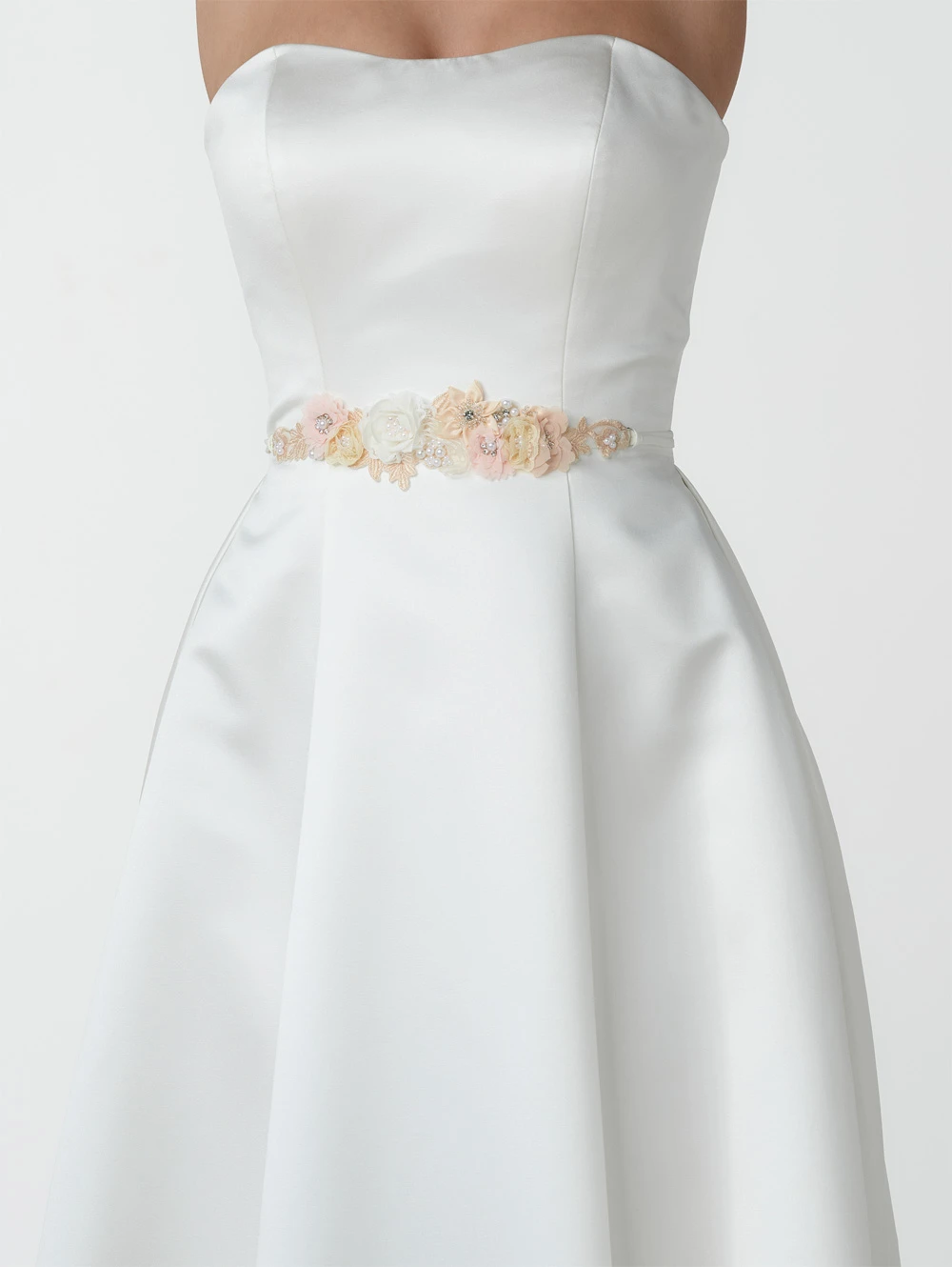Multi colour riem van het merk Poirier om een extra accent aan uw trouwjurk te geven. De ceintuur is versierd met bloemapplicaties, strass, parels en kraaltjes.