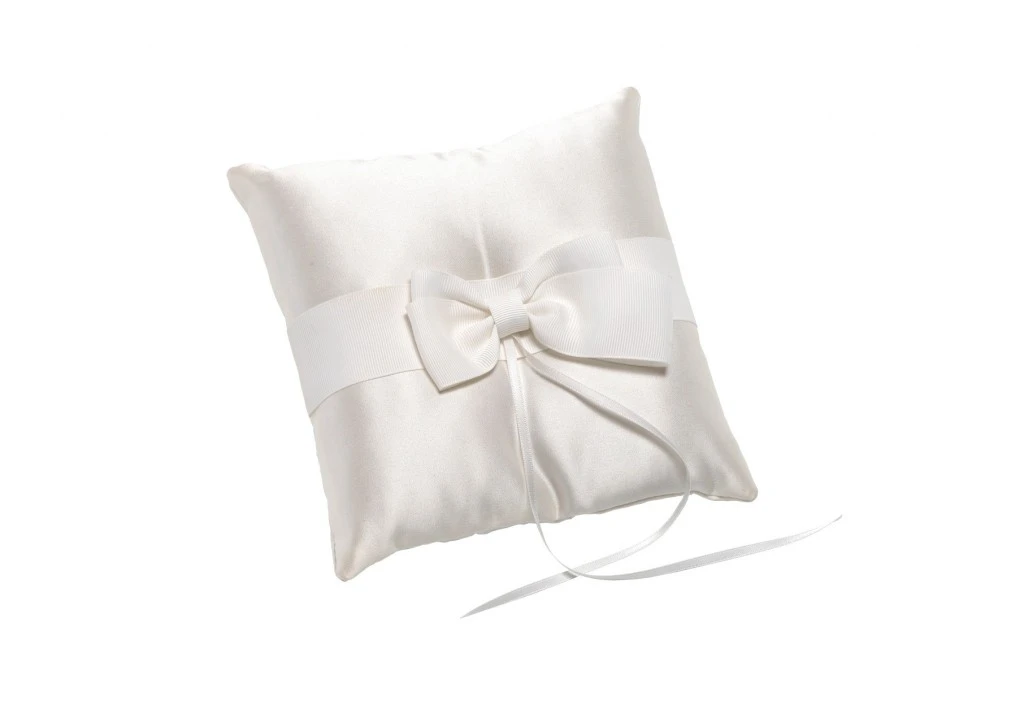 Ringkussen van het merk Poirier met een grote strik. Aan de lintjes kunnen de trouwringen worden bevestigd.