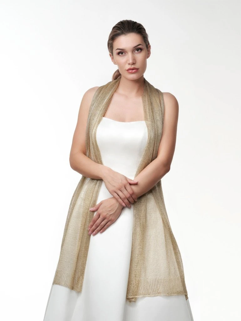 Deze stola S142 van Poirier maakt jouw trouwoutfit tot één geheel doordat deze in 3 verschillende metallic-kleuren verkrijgbaar is: goud- of rosékleurig. Daarnaast is deze sjaal op meerdere manieren te dragen, want met een afmeting van 210 x 60cm kun je stola op vele verschillende manieren dragen!