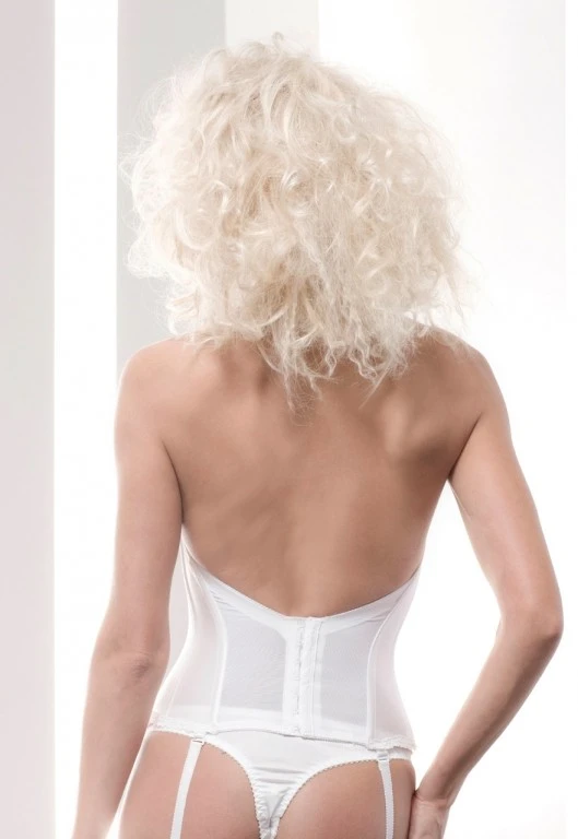 Dit luxe Poirier torselet van satijn met negen baleinen heeft een perfecte, figuurcorrigerende pasvorm waardoor de bruidsjurk volledig tot haar recht komt. Kenmerken als strapless, lage rug en figuurcorrigerend maken dit model tot de ideale lingerie voor onder de bruidsjurk.
